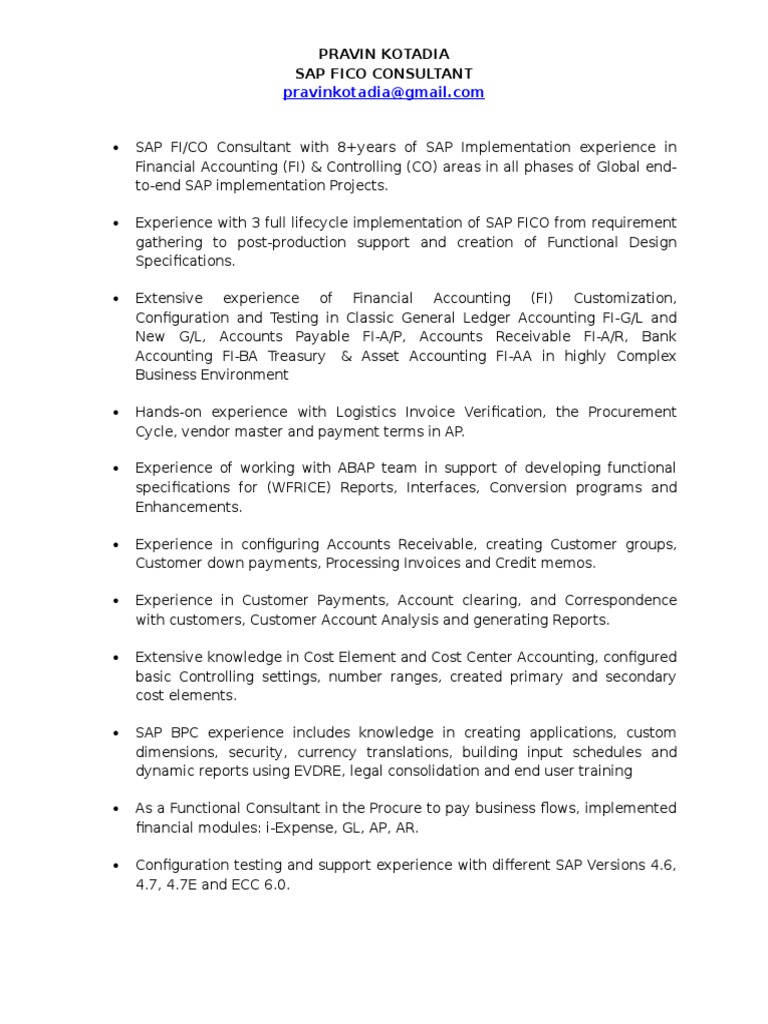 Sap Fico Cv. On this page you will find a number of professionally designed templates that can be used to create an interview winning CV or resume. SAP FICO Consultants perform a support role and are responsible for updating SAP configurations, troubleshooting, customizing SAP solutions, training users, and answering to their inquiries.
