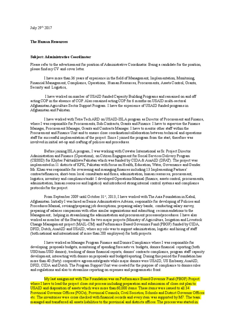 Cover Letter Administrative Coordinator 29July2017 ...