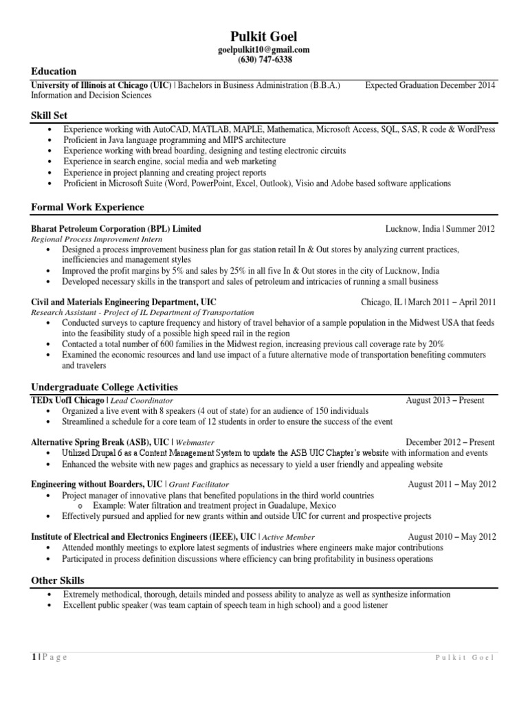 resume pulkit goel | Microsoft | Master Of Business ...